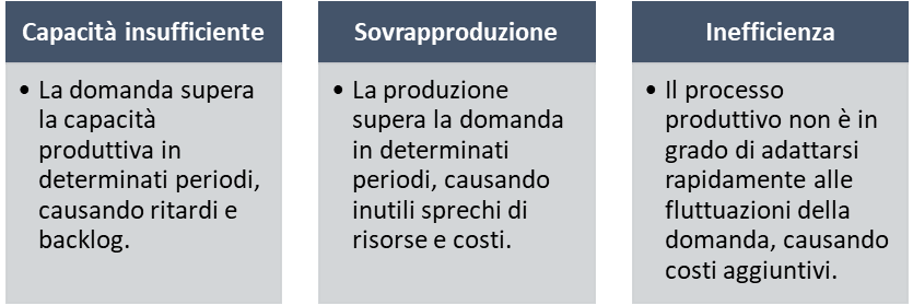 - Buffer di capacità: capacità produttiva in eccesso utilizzata per assorbire le fluttuazioni della domanda a lungo termine.