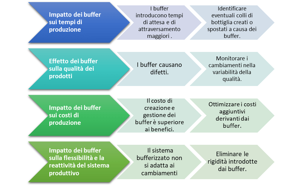 L’implementazione dei buffer non è priva di conseguenze e richiede un’attenta analisi per valutare i potenziali impatti su diversi aspetti del ciclo produttivo.