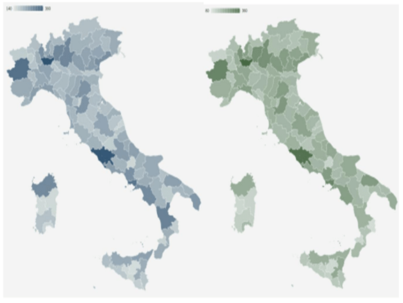 Queste imprese sono distribuite sul territorio nazionale in modo non uniforme. La maggior parte di esse si trova nelle regioni del Nord Italia, in particolare in Lombardia, Veneto, Emilia-Romagna e Piemonte.