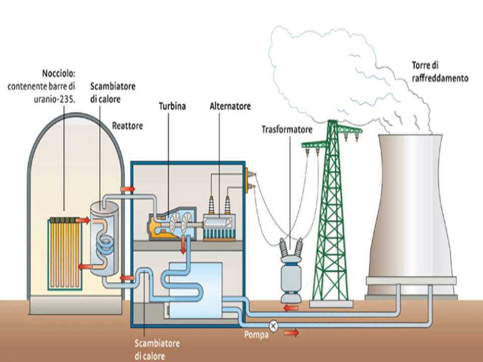 - Sistema di raffreddamento: Impianto per la rimozione del calore dal reattore e la sua dissipazione nell’ambiente.
